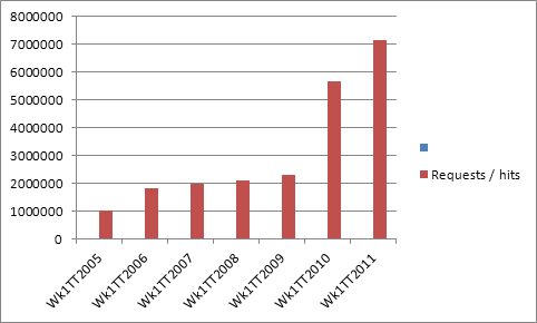 Figure 2: Pages Requests in Week 1 of Trinity Term (old + new WebLearn)
