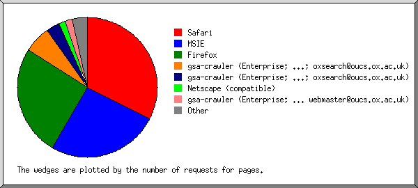 I thought this pie chart of browser accesses to WebLearn may pique interest – for “Safari” read “Safari / Chrome”! This is from the period 1st August 2010 to 31 July 2011.