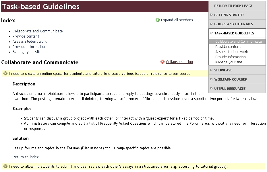 2012 sees the introduction of a brand new look for the WebLearn Guidance Site.