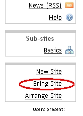 Your site will now be available to site participants again. Please remember to check the membership of your site. You may want to re-attach the site under to your departmental or college area. To do this, navigate to the desired parent site and click on ‘Bring Site’.