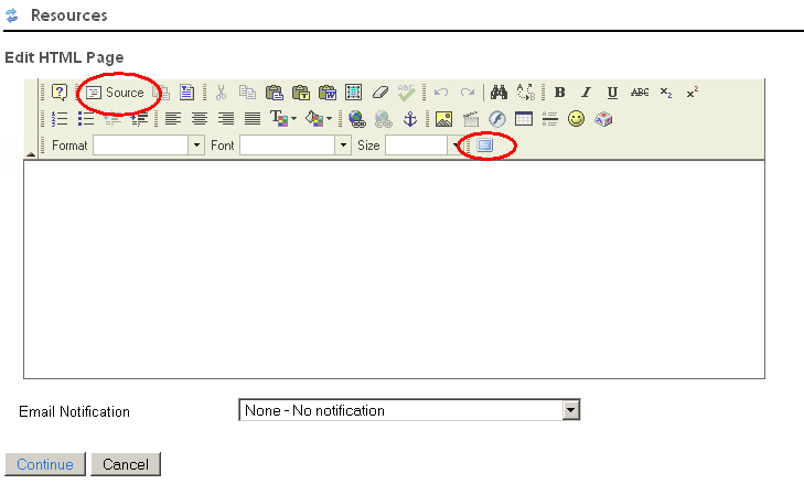 To insert this code, switch to the ‘Source’ view within the editor; you may also find it useful to show a full screen version of the editor.