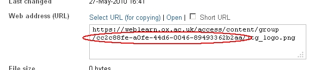 title– search just the title, this could be the title of an email message or a documentcontents– search just the contents i.e. not title or description etc.siteid– search just the stated site. The site ID is found in the URL of a Resource, it is accessible via the Edit Details page: