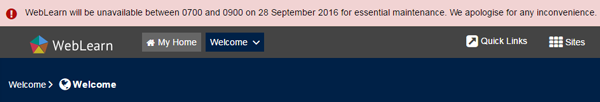 WebLearn has a system-wide messaging tool. We will use this to keep you informed about upcoming maintenance so you can plan your work.