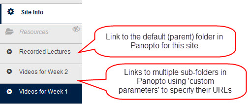 By default (in the absence of any Custom Parameters) a link to Panopto will take the user to the parent folder corresponding to the current WebLearn site; this folder will probably contain multiple videos.