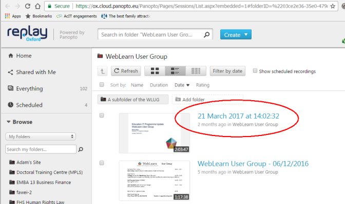 - Making recorded lectures available in WebLearn – blog post May 2017