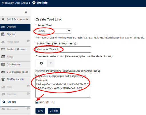 Linking to more than one Replay folder on a single WebLearn site