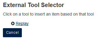 To add a link to the Replay tool from within a Lessons page, go to the Lessons tool and click on the ‘Add Content‘ link, then click ‘Add External Tool’. (NB: the Replay tool must have already been added to the site as described above.)