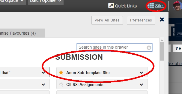 • Submission sites now have their own section in the Sites Drawer