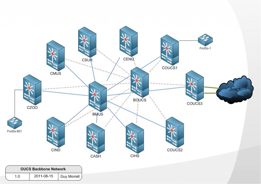 The OUCS backbone consists of 12 Cisco Catalyst 6500s and around 200 Cisco Catalyst 3750s.