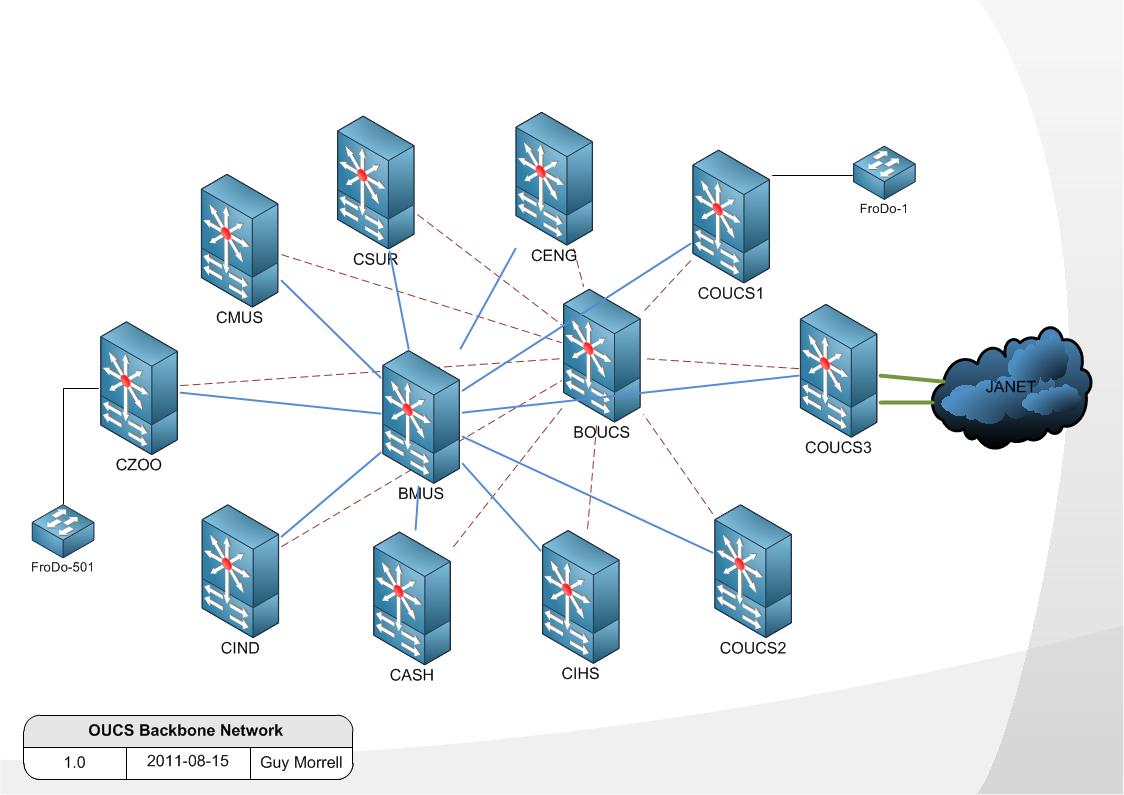 The OUCS backbone consists of 12 Cisco Catalyst 6500s and around 200 Cisco Catalyst 3750s.