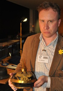As mentioned in the last photo from the last blog, one man’s effects were brought in right at the end of the day. In this photo Alun Edwards, RunCoCo, University of Oxford handles an artefact with gravity and respect: